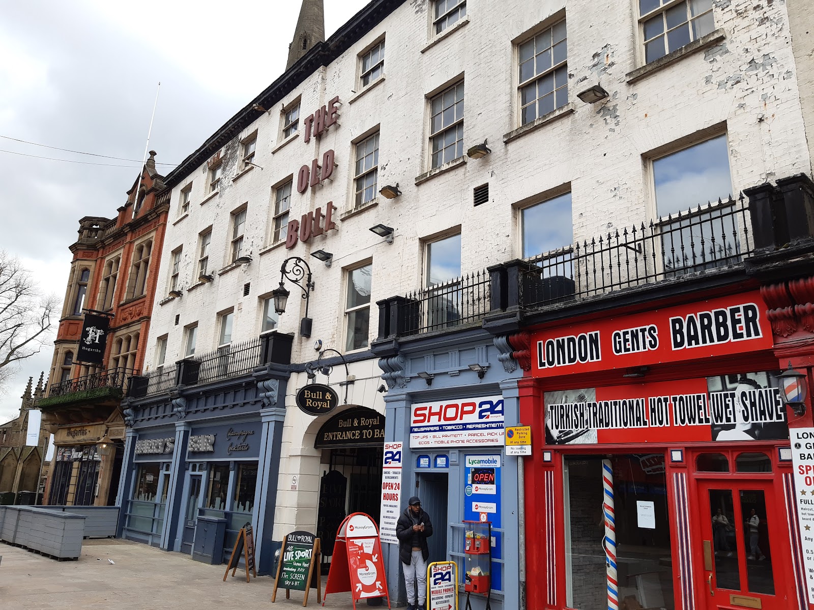 Back to Church Street, and we get to Barney's. A reverse of the normal story, this is a building that has become a pub, after previously being a butchers and an electrical hardware store. It was Barney's Piano Bar for a while.Further along, and on the right is The Bear's Paw, our third pub that is still open. It always has smokes stood outside, and the image below is no different. Previously known as The Grapes, The Last Orders and the Church Street Tavern, but the Bears Paw was the original name. More here.